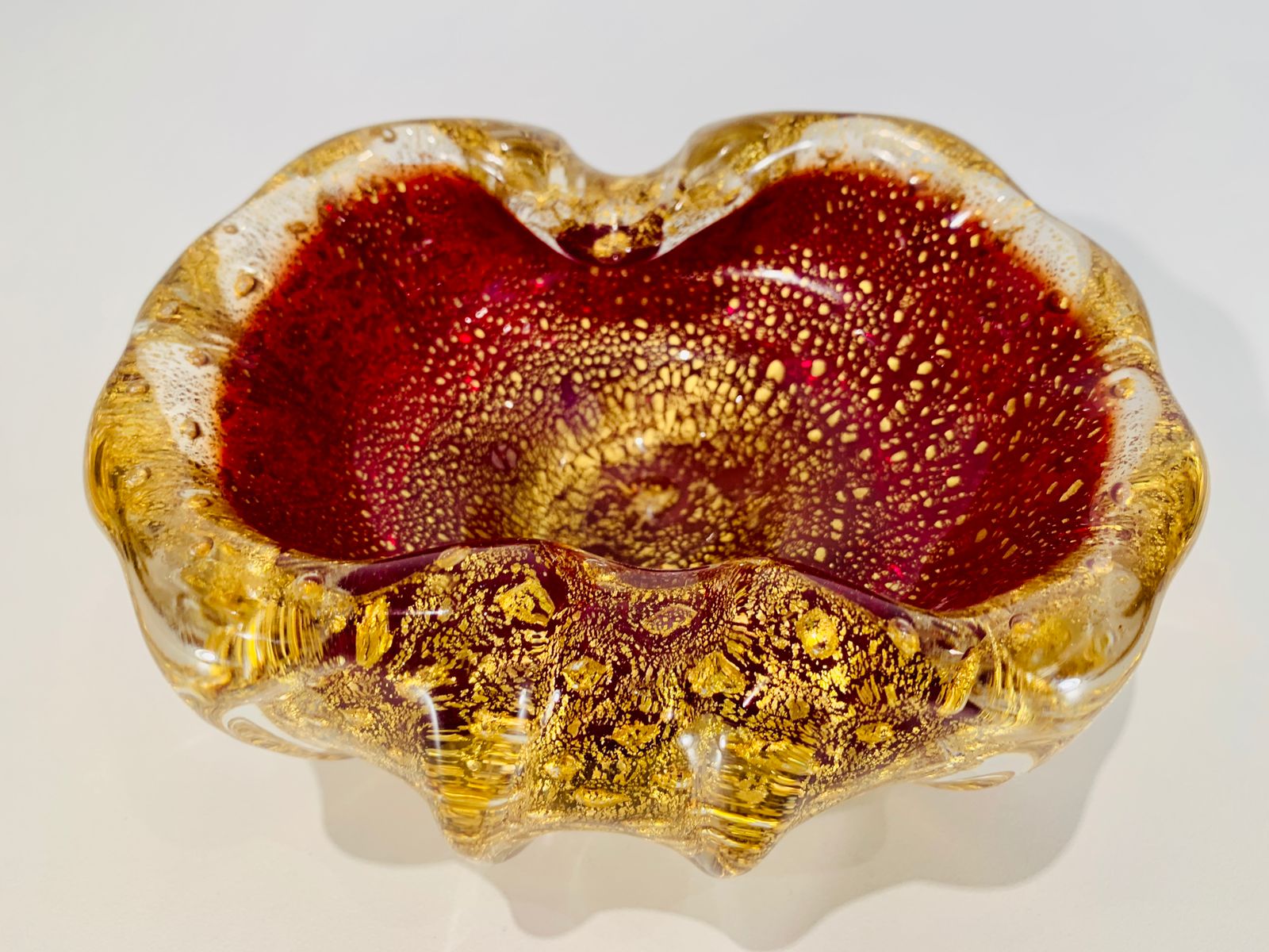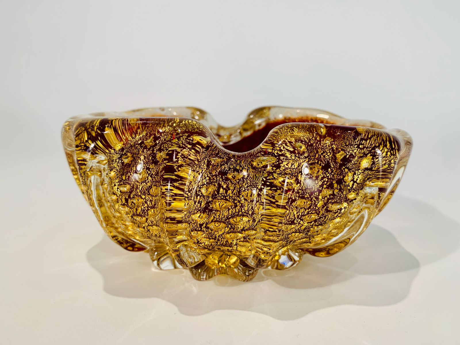 Murano ERCOLE BAROVIER 1950 com folha de ouro e bolhas de ar. Peça única.