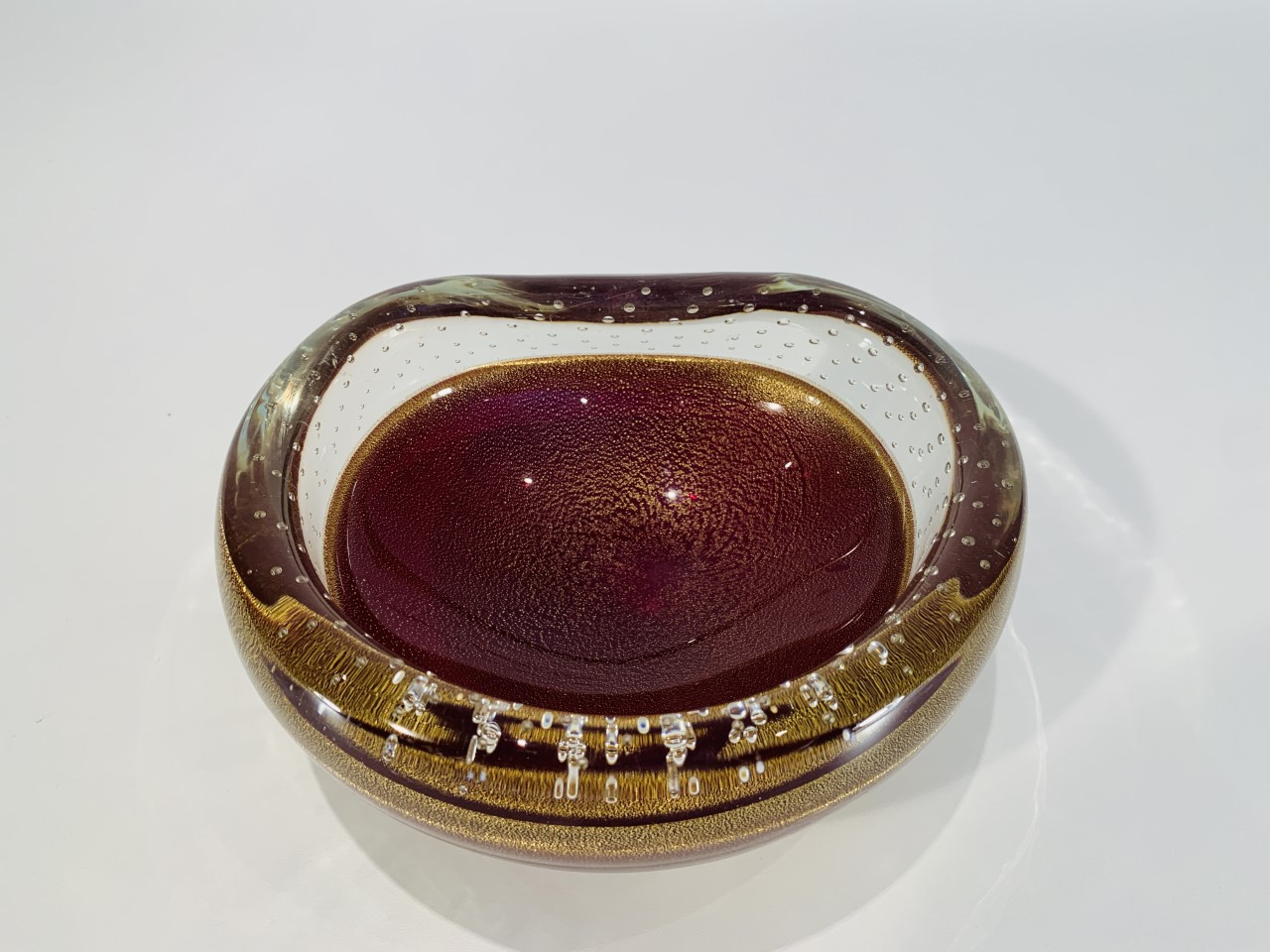 Murano bowl em vidro artístico soprado de Murano com ouro produzido por Archimede Seguso 1950 (par)