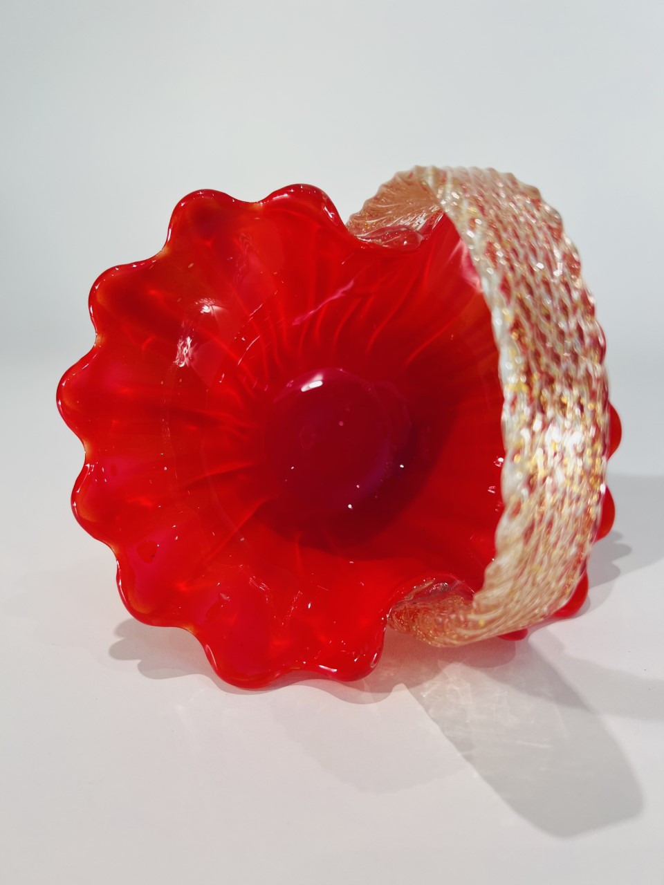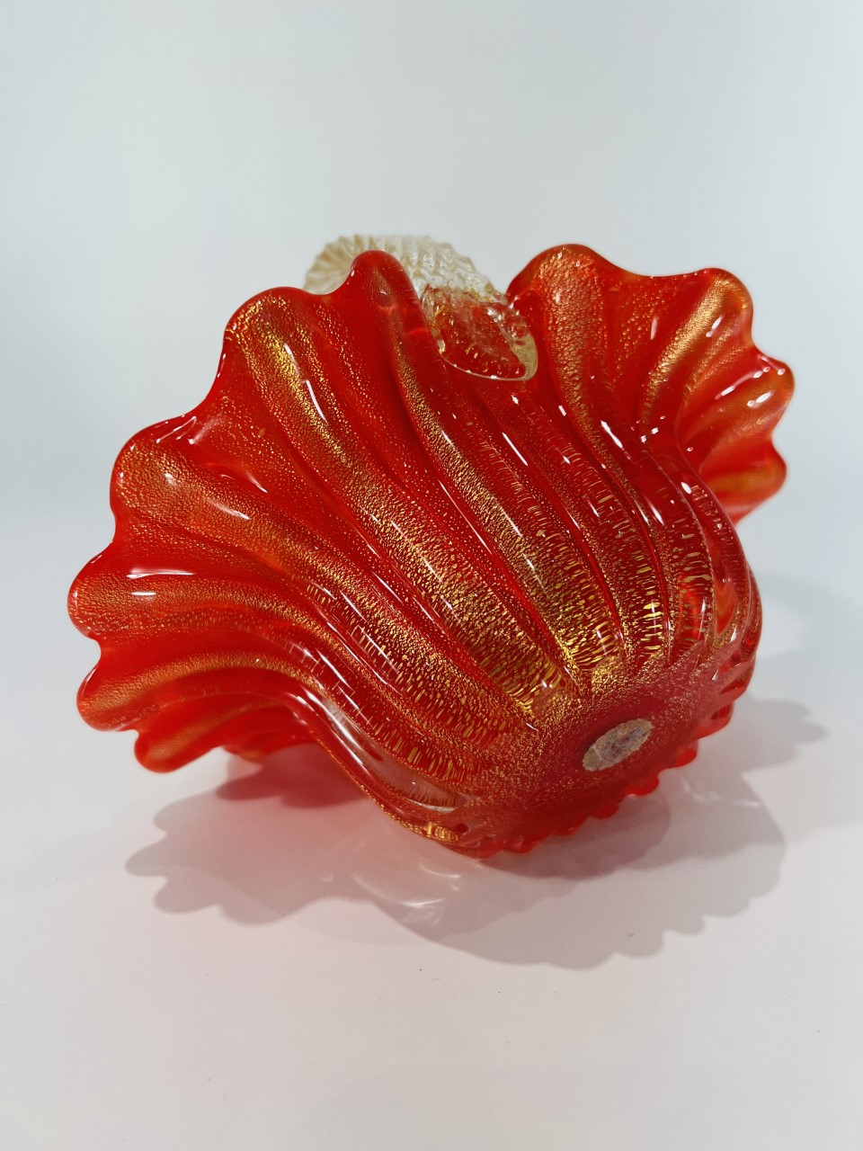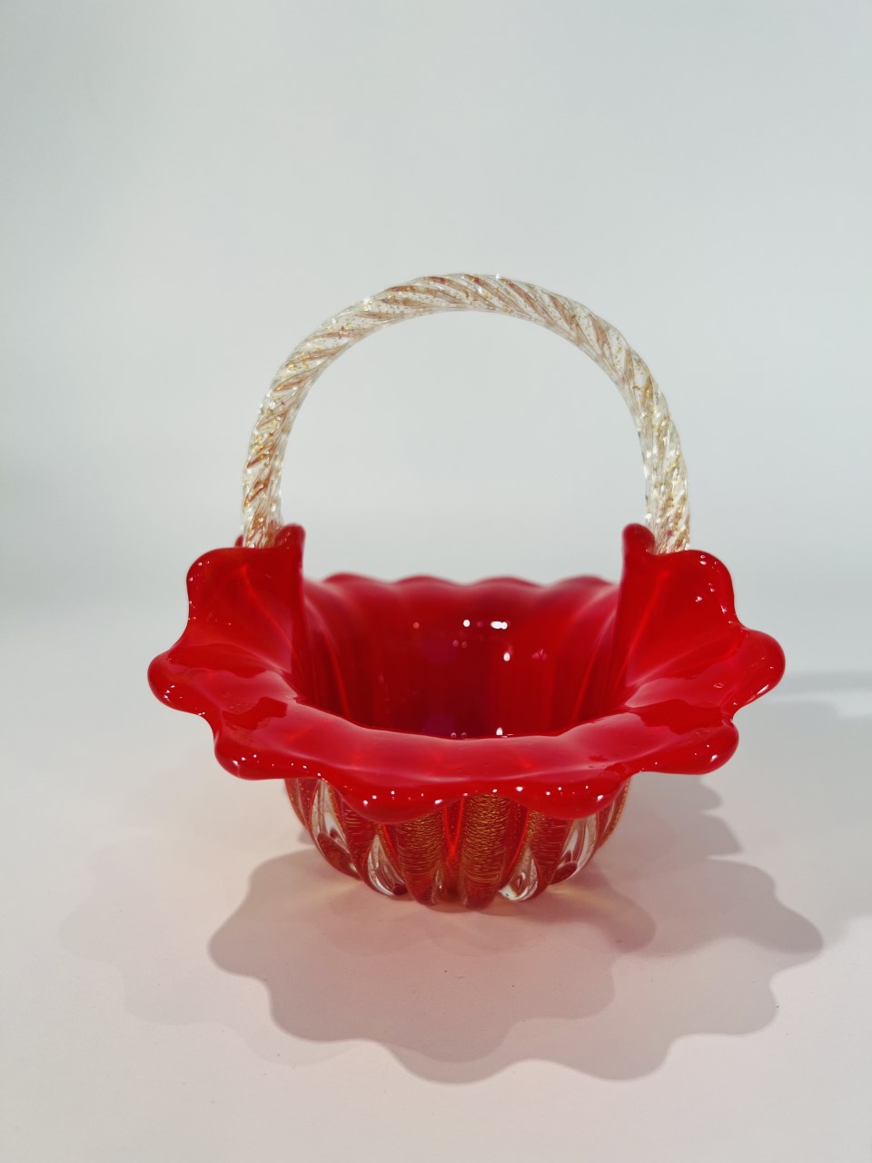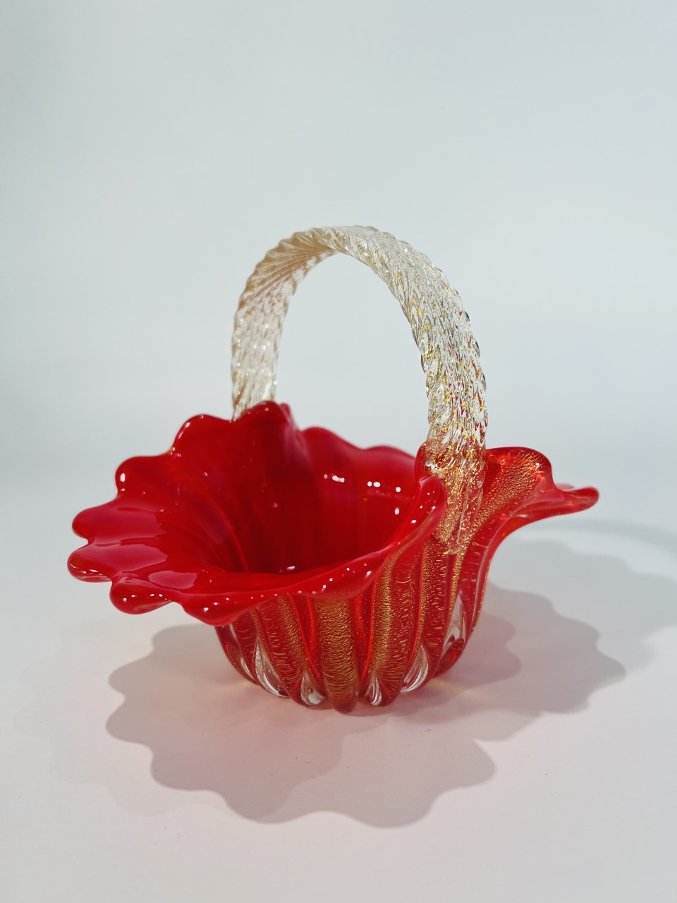 Murano cesta em vidro artístico soprado de Murano “Corallo oro” por Archimede Seguso 1950