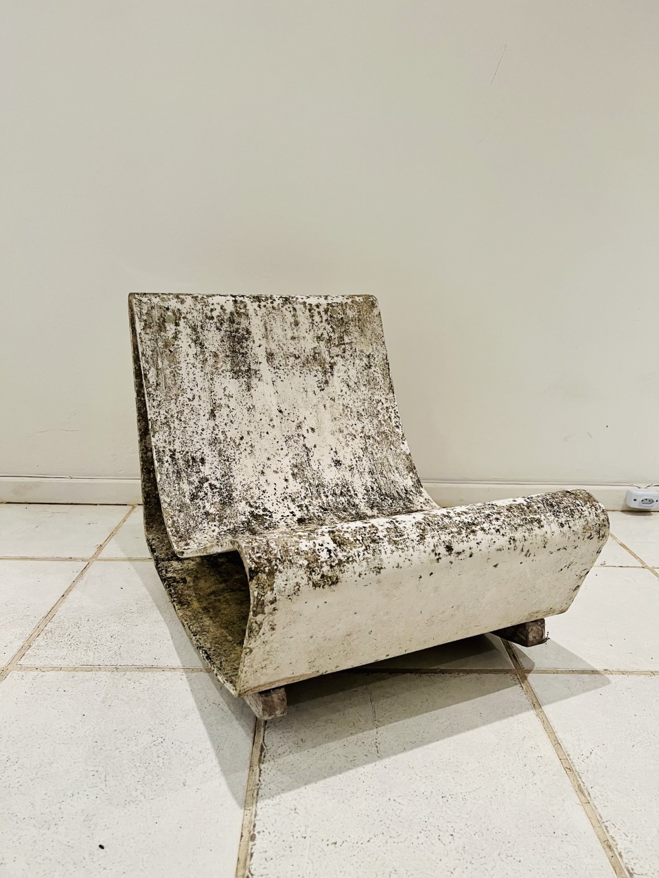 Cadeira em fibrocimento e madeira assinada e numerada Eternit desenho de Willy Guhl 1953 - Vintage