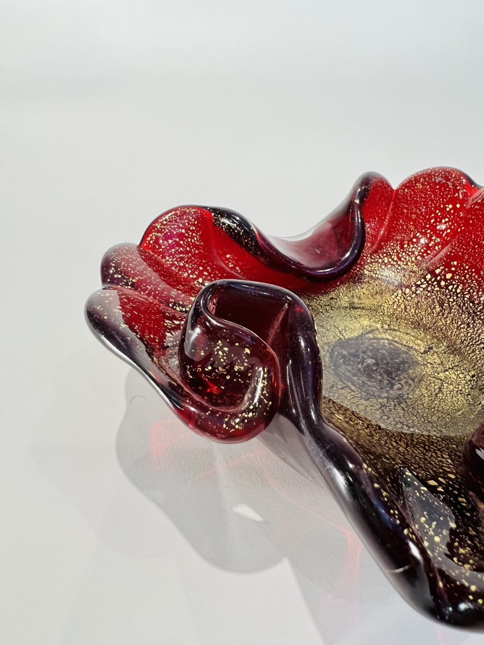 Murano bowl em vidro artístico soprado de Murano com ouro atribuído a Aureliano Toso 1950