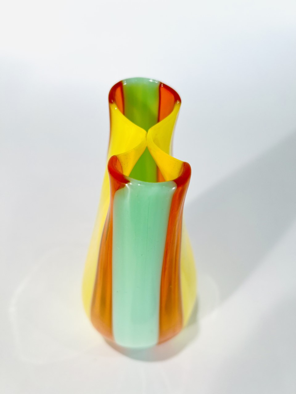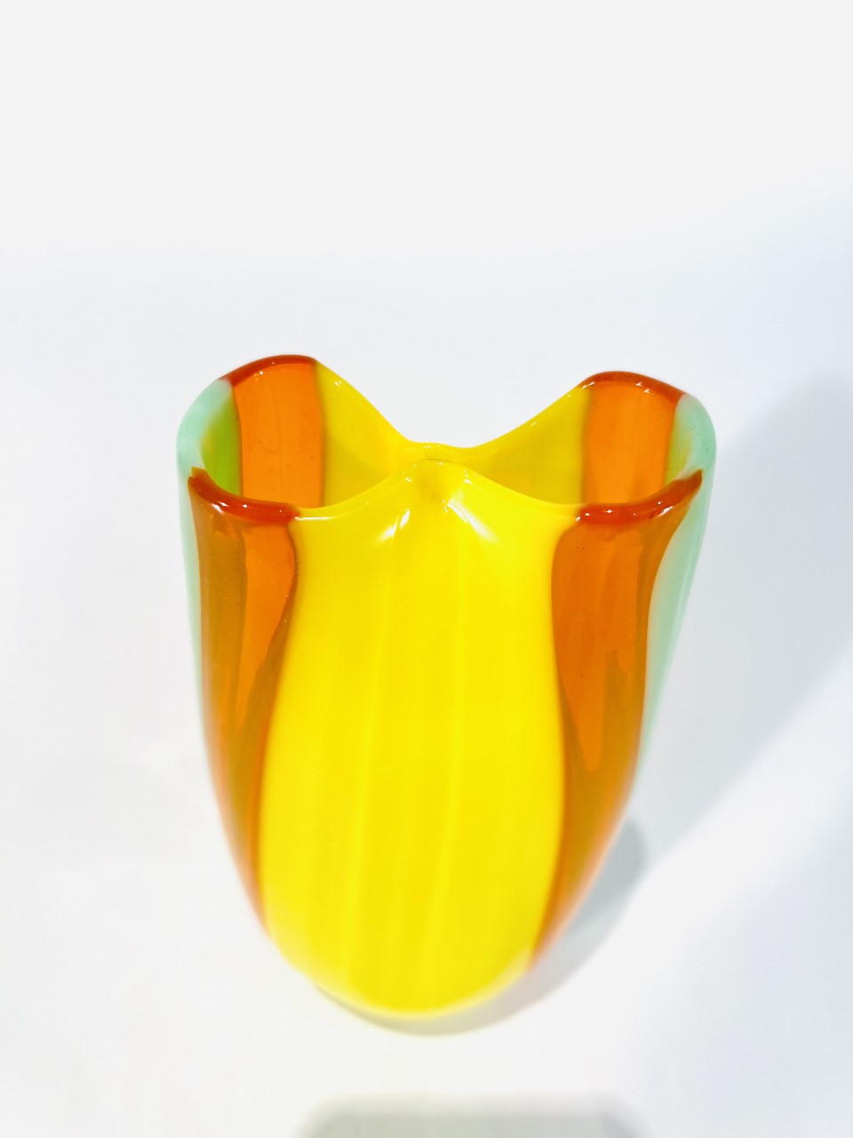 Vaso em vidro artístico soprado de Murano produzido por Fratelli Toso desenho de SILVANNI 1980