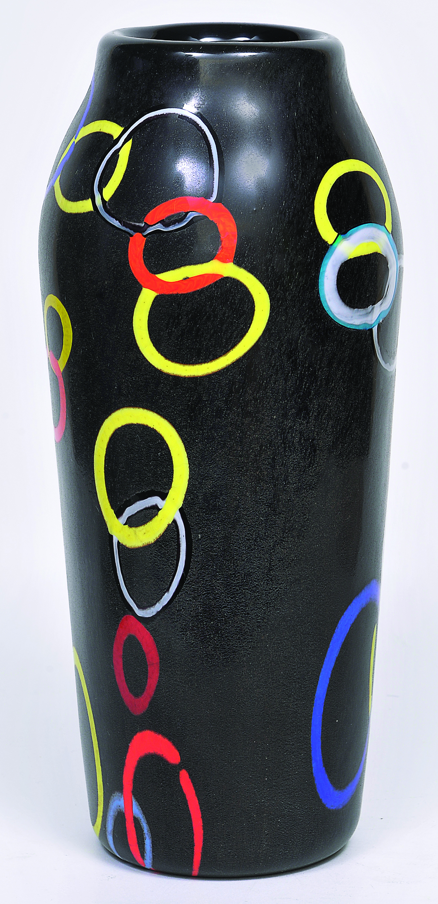 Vaso em vidro artístico soprado de Murano produzido por Ermanno Toso 1953 “Nerox a Cerchi Concatenati”