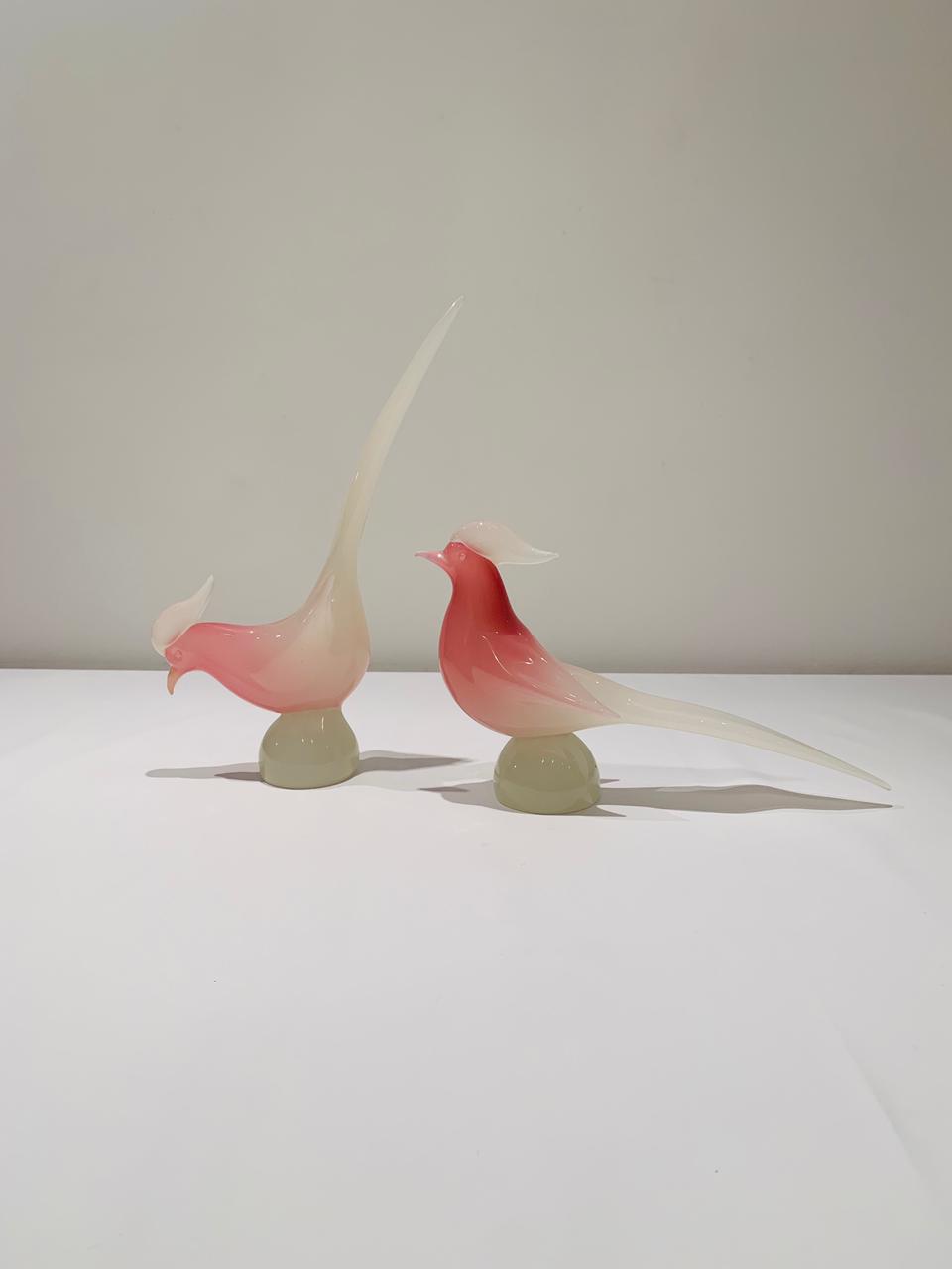 Par de esculturas africanas esculpidas em madeira policromada representando girafas em tamanho monumental circa 1950