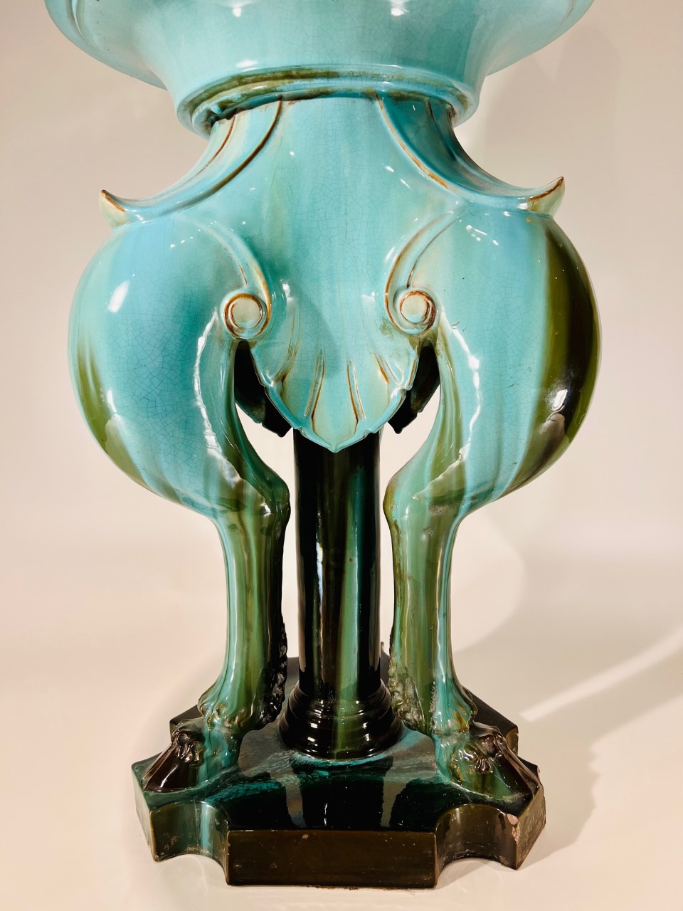 Vaso e coluna em porcelana francesa Art Nouveau assinado CLEMENT MASSIER 1900