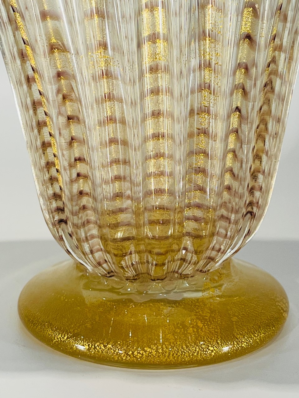 MURANO vaso em vidro artístico soprado de Murano com pé aplicado “zebrato” Barovier&Toso 1948