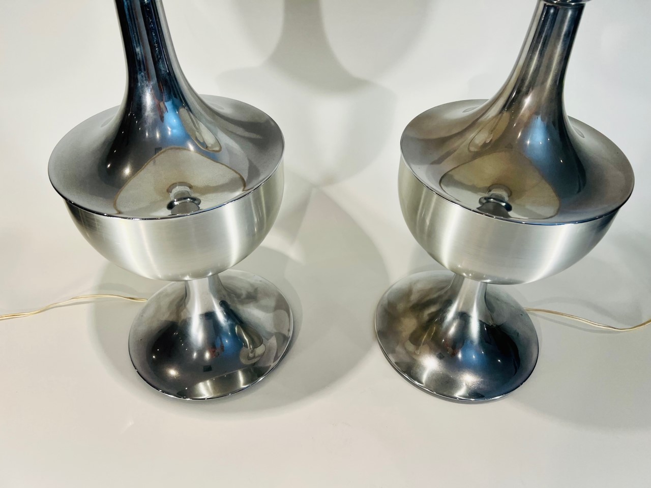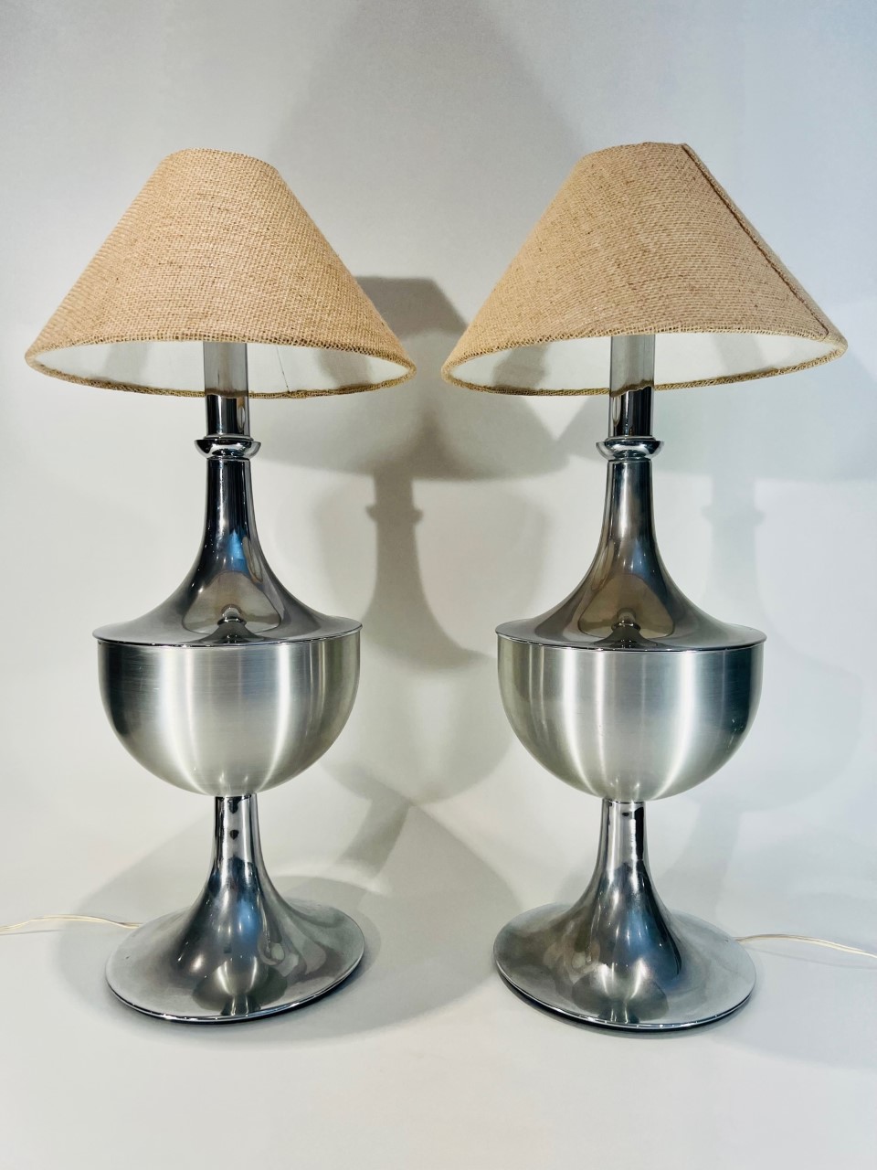 Par de luminárias em aço polido desenhadas por Madame Journel circa 1950
