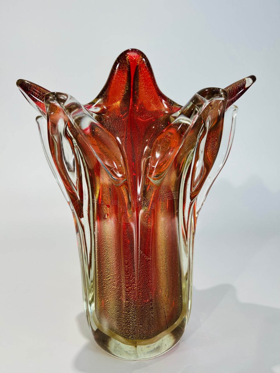 Vaso em vidro artístico soprado de Murano atribuído ARCHIMEDE SEGUSO 1950 com folha de ouro