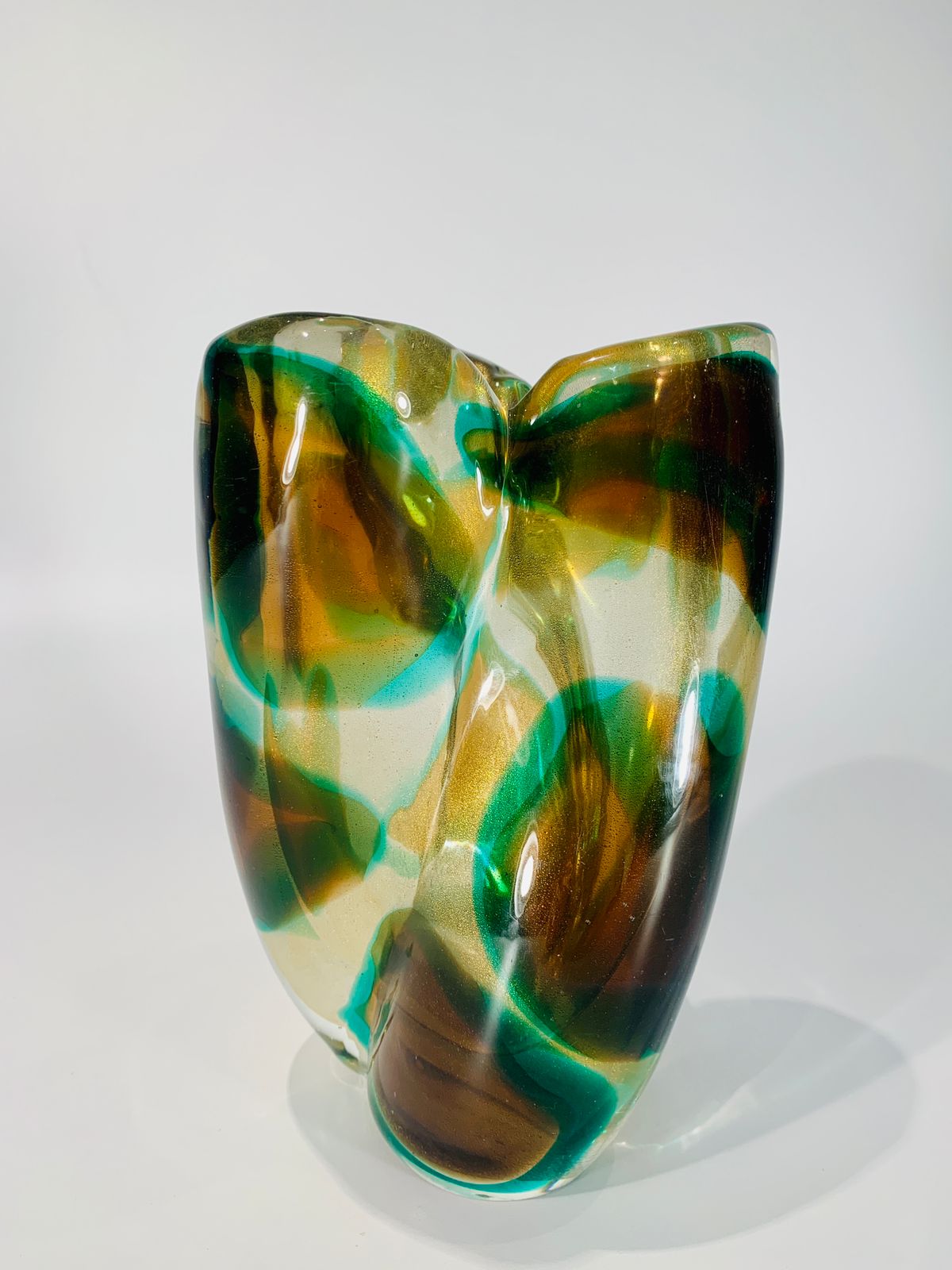 Murano ARCHIMEDE SEGUSO 1952 vaso “macchia ambra verde”. Peça única