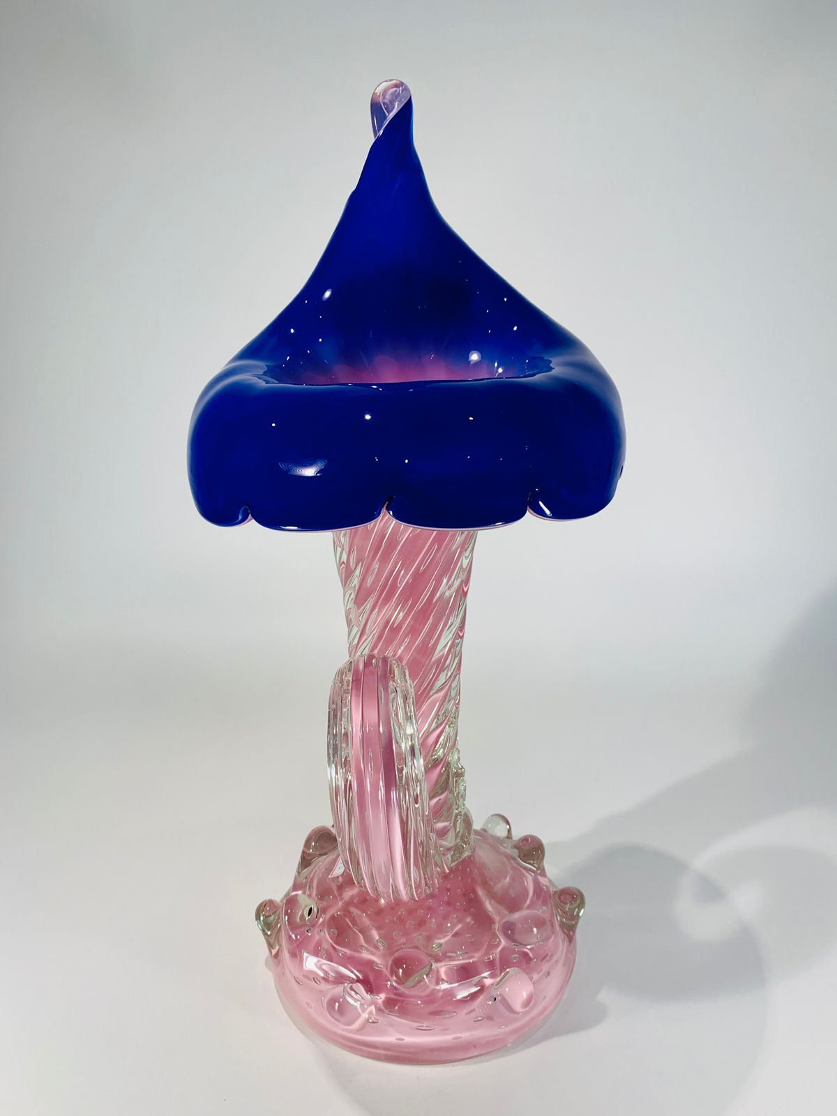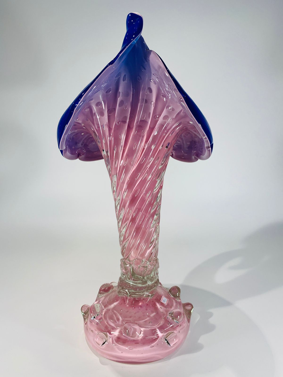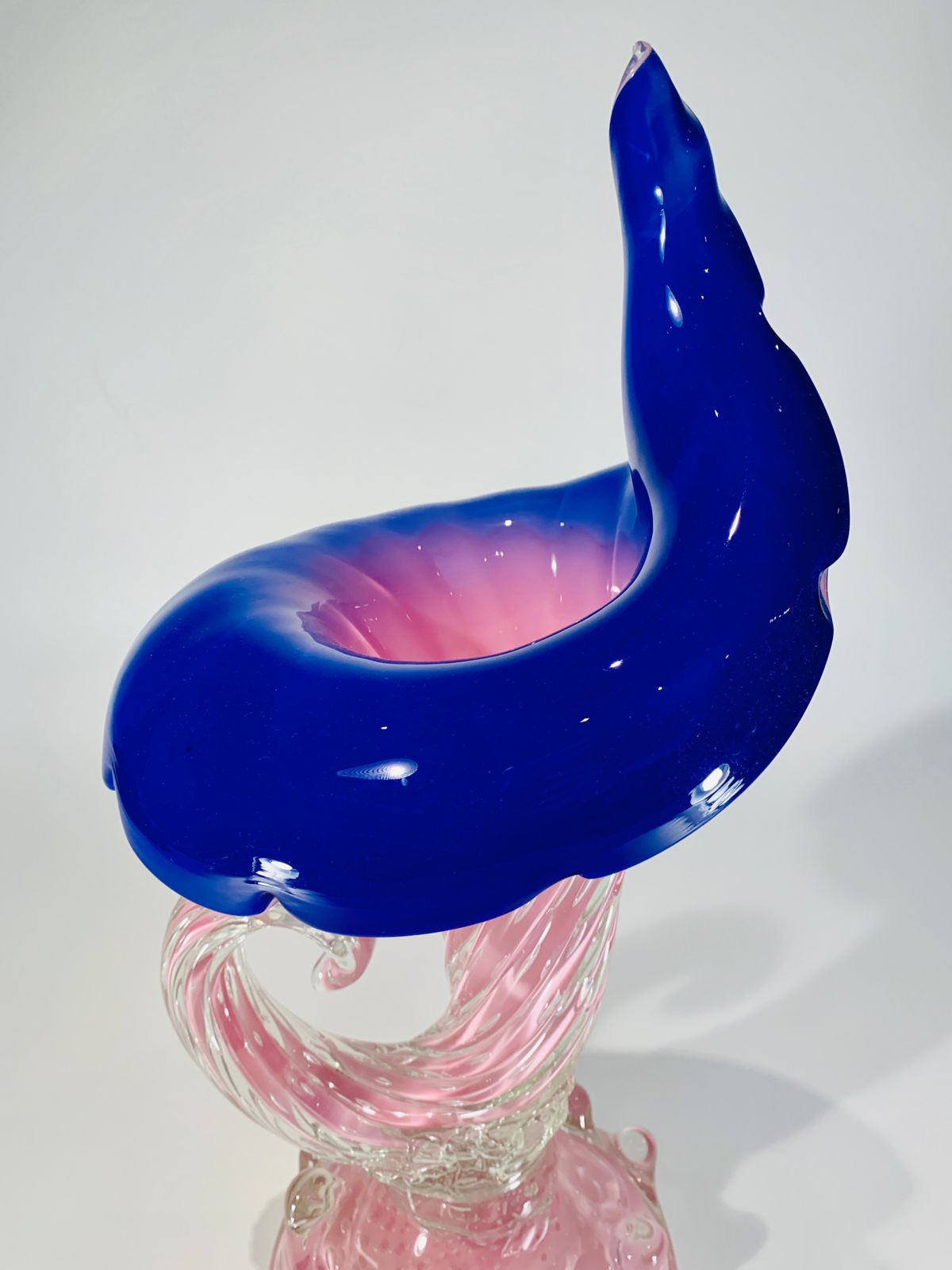 Vidro artístico soprado de Murano FRATELLI TOSO 1950 em vidro artístico soprado de Murano com partes aplicadas e bulicanti. Peça única.